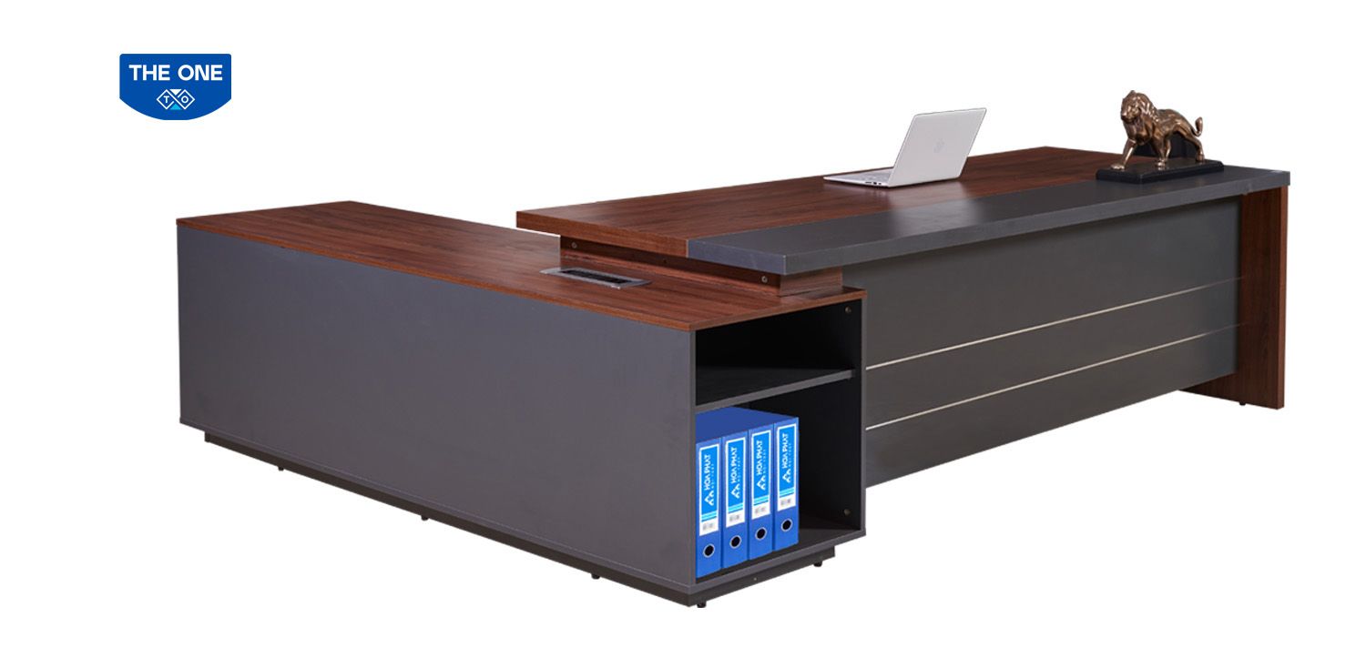 Bàn có tủ phụ đi kèm với hộp điện cao cấp tạo nên sự sang trọng và đẳng cấp cho sản phẩm.