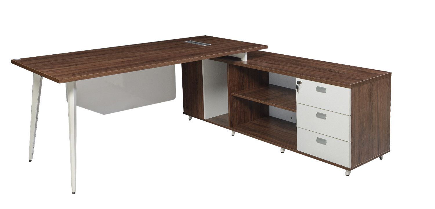 Bàn kết hợp mặt gỗ Melamine cao cấp, yếm bàn sơn PU và có tủ phụ đi kèm.