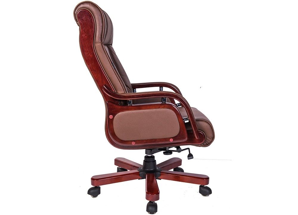Ghế lãnh đạo cao cấp đệm tựa bọc da thật tại phần tiếp xúc trực tiếp với người sử dụng. Chân tay gỗ tự nhiên sơn phủ PU