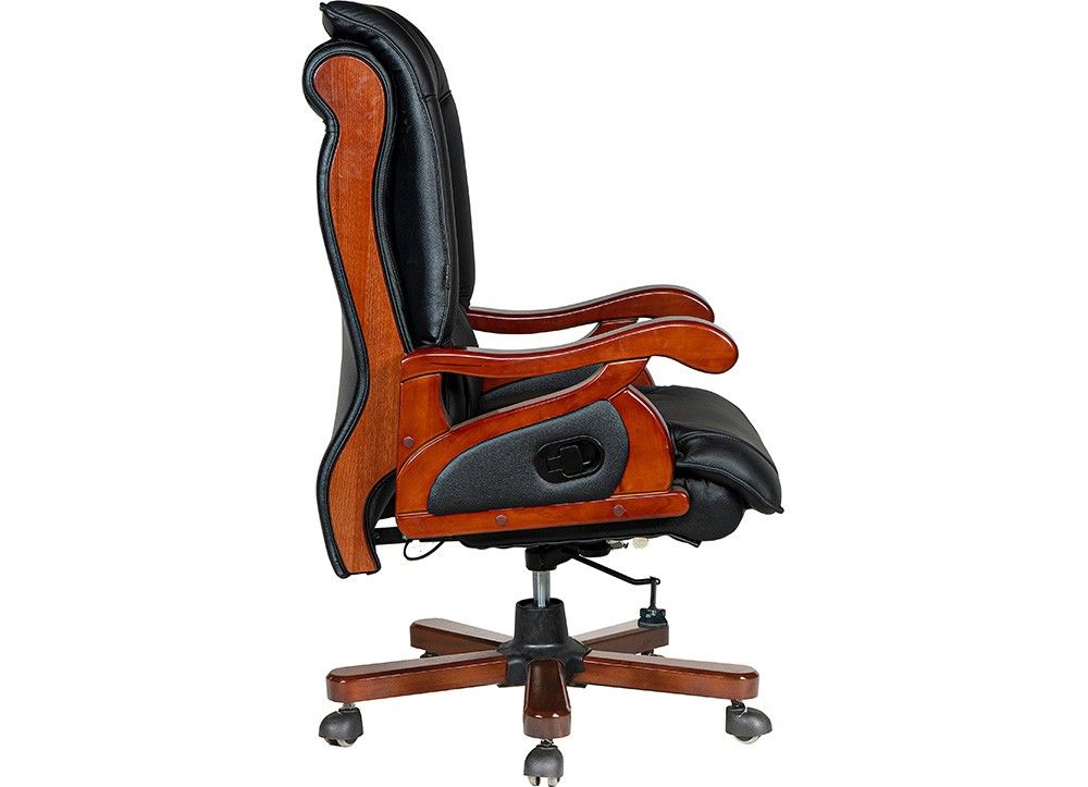 Ghế lãnh đạo cao cấp đệm tựa bọc da thật tại phần tiếp xúc trực tiếp với người sử dụng. Chân tay gỗ tự nhiên sơn phủ PU.