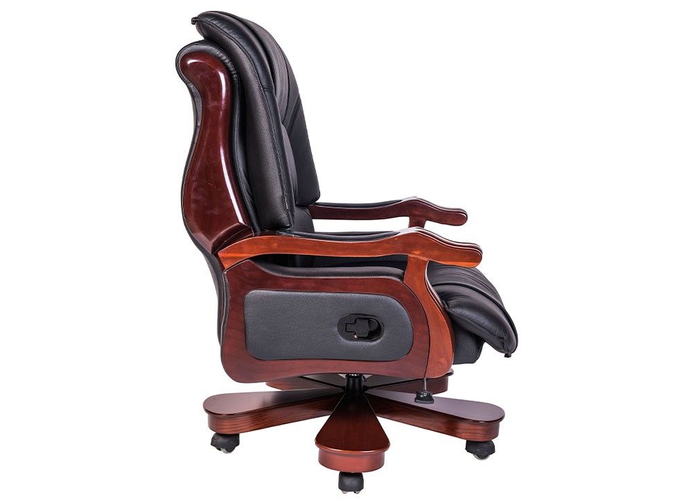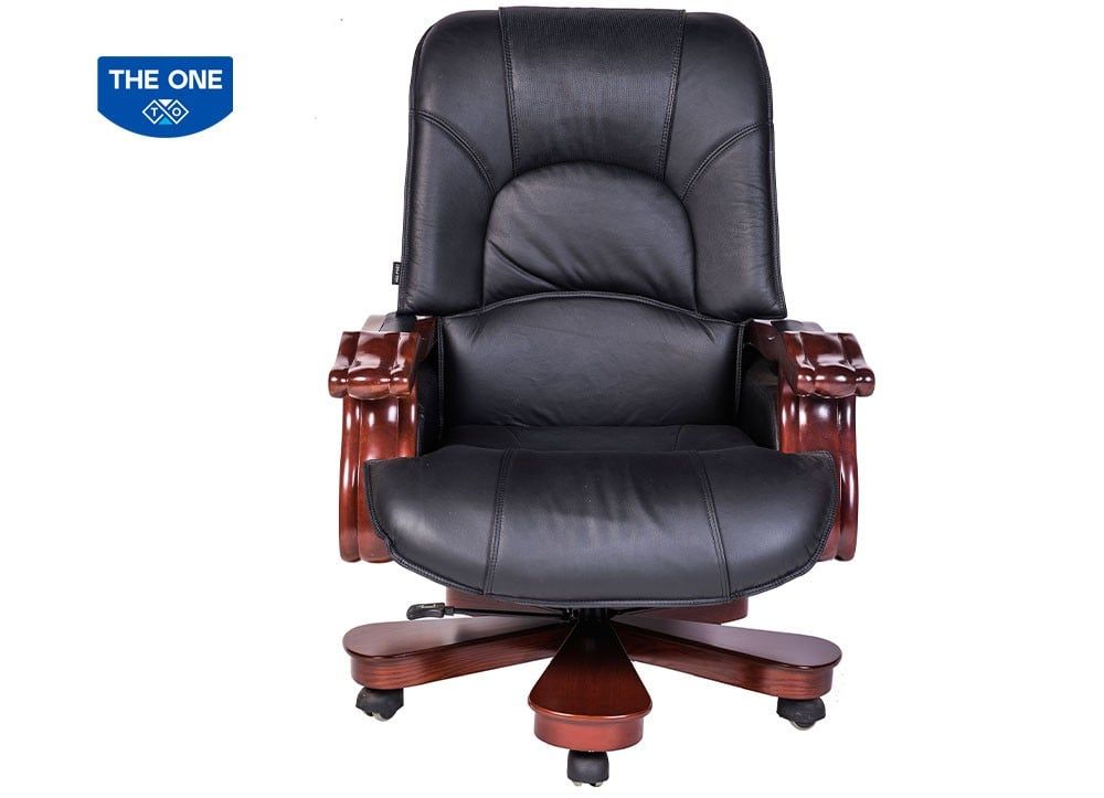 Ghế lãnh đạo cao cấp đệm tựa bọc da thật tại phần tiếp xúc trực tiếp với người sử dụng. Chân tay gỗ tự nhiên sơn phủ PU.