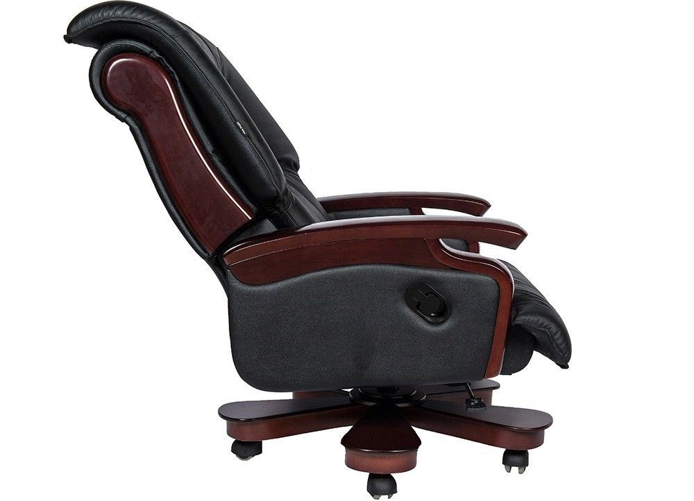 Ghế lãnh đạo cao cấp đệm tựa bọc da thật tại phần tiếp xúc trực tiếp với người sử dụng. Chân tay gỗ tự nhiên sơn phủ PU