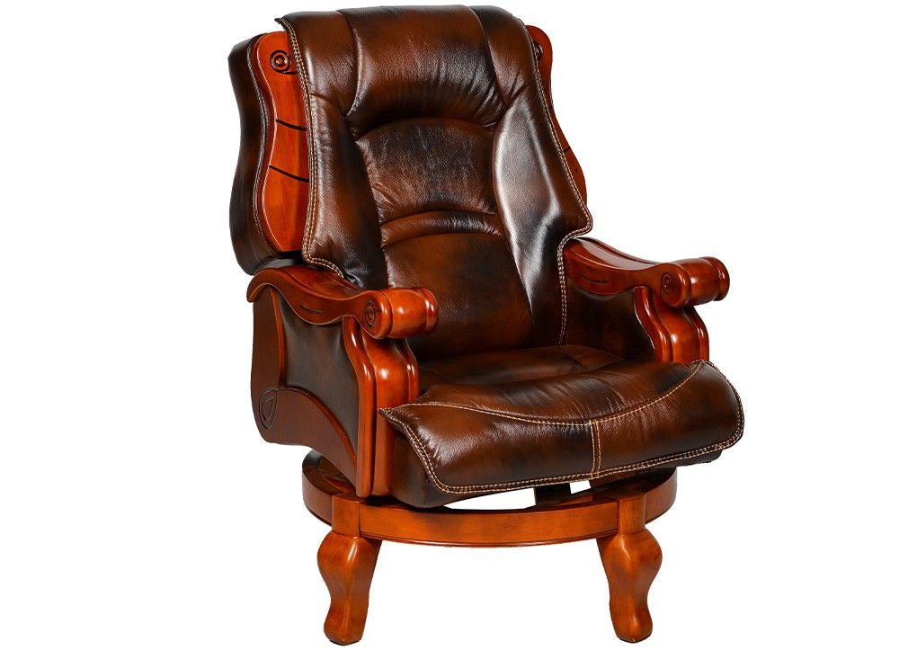 Ghế lãnh đạo cao cấp đệm tựa bọc da thật tại phần tiếp xúc trực tiếp với người sử dụng. Chân tay gỗ tự nhiên sơn phủ PU