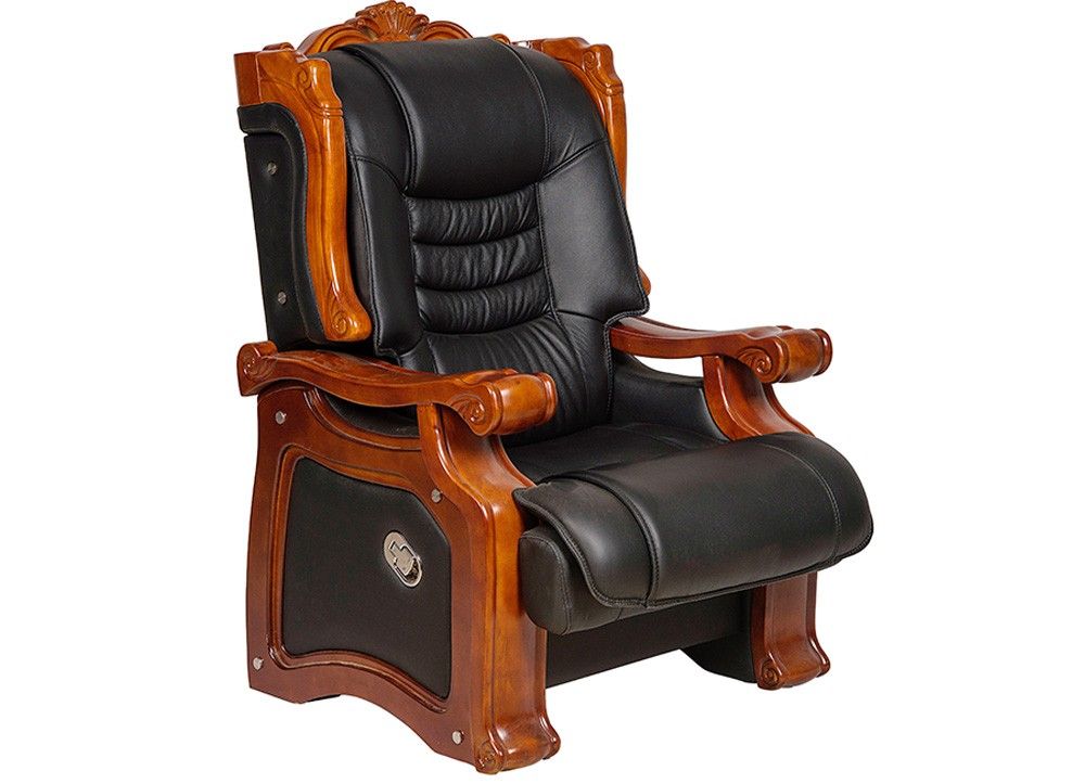 Ghế lãnh đạo cao cấp đệm tựa bọc da thật tại phần tiếp xúc trực tiếp với người sử dụng. Chân tay gỗ tự nhiên sơn phủ PU