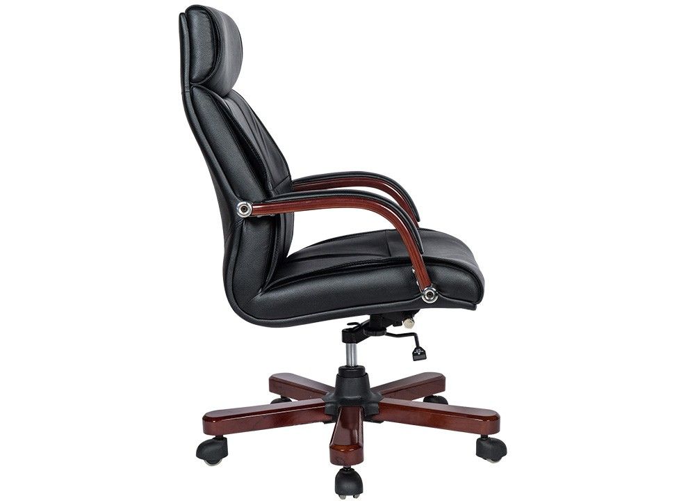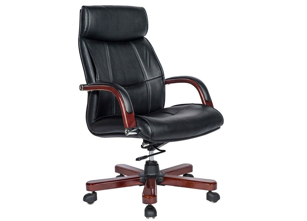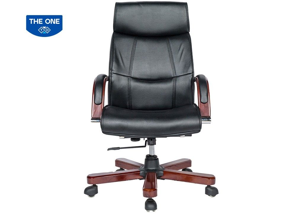 Ghế lãnh đạo cao cấp đệm tựa bọc da thật tại phần tiếp xúc trực tiếp với người sử dụng. Chân tay gỗ tự nhiên sơn phủ PU
