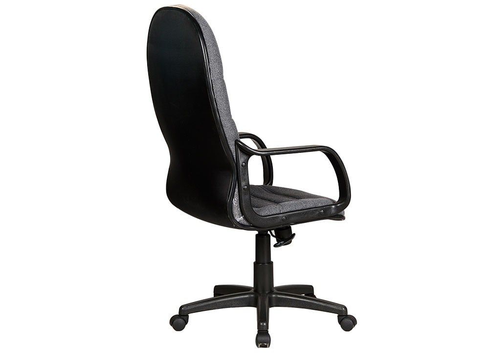 Ghế lưng cao bọc vải, đệm tựa liền khối, chân tay bằng nhựa.